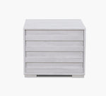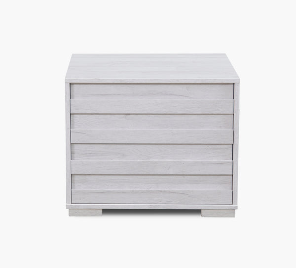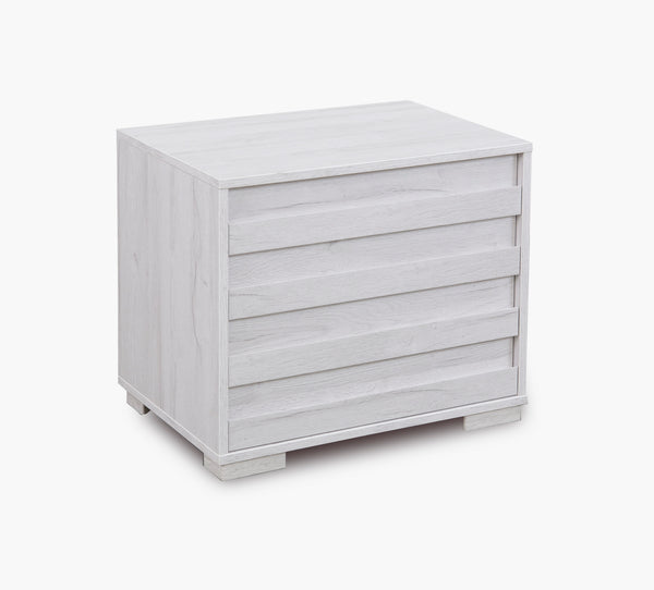 A charming nightstand finished in white oak with wood grain texture for a natural, welcoming look. Slatted drawer fronts add subtle detail, while two spacious drawers keep your essentials close at hand. Designed with full-extension self-closing drawers for smooth functionality and crafted from durable engineered wood for lasting quality.