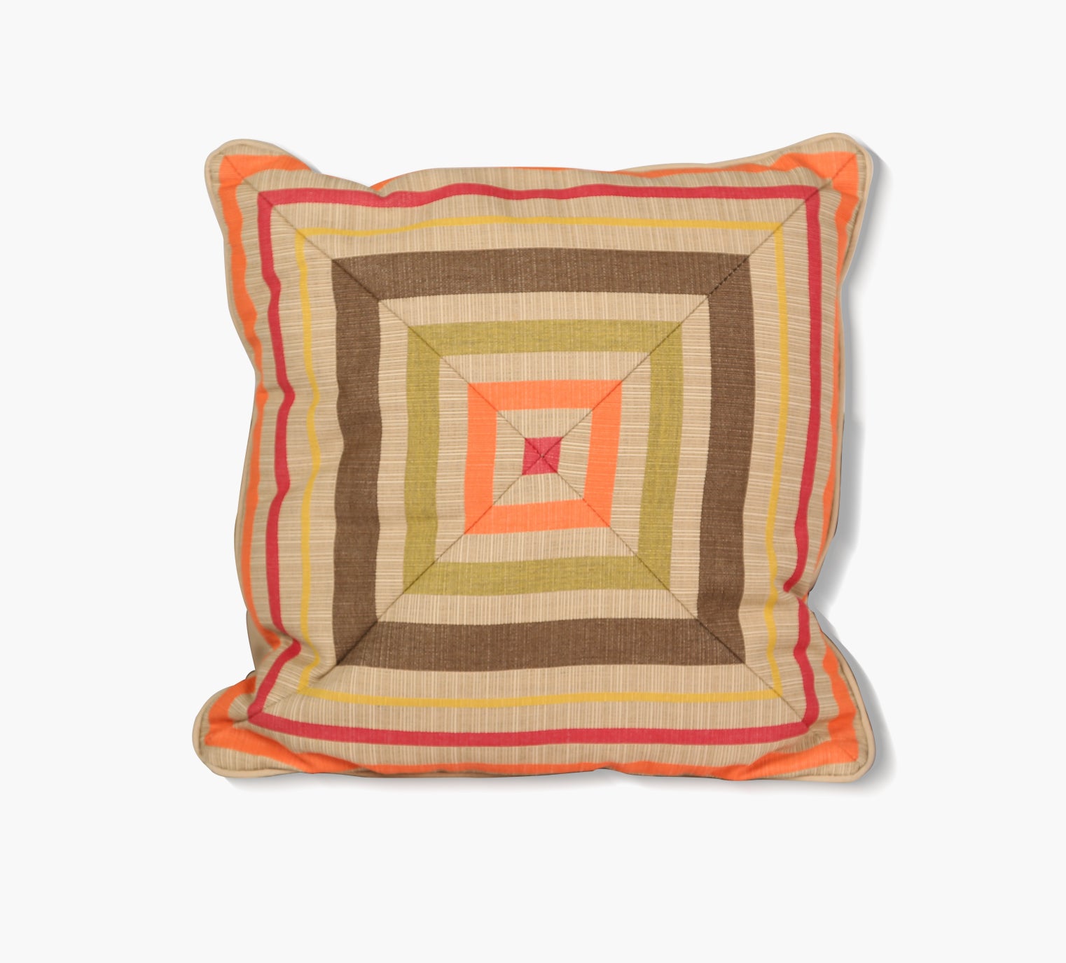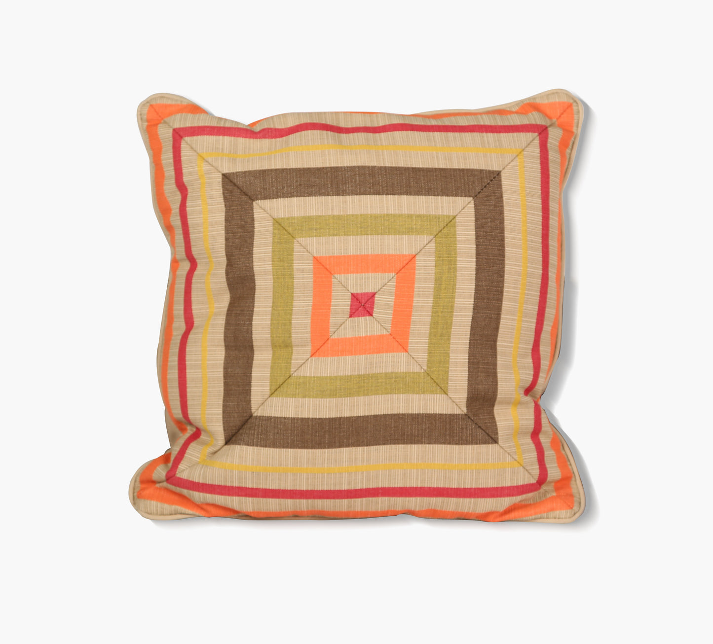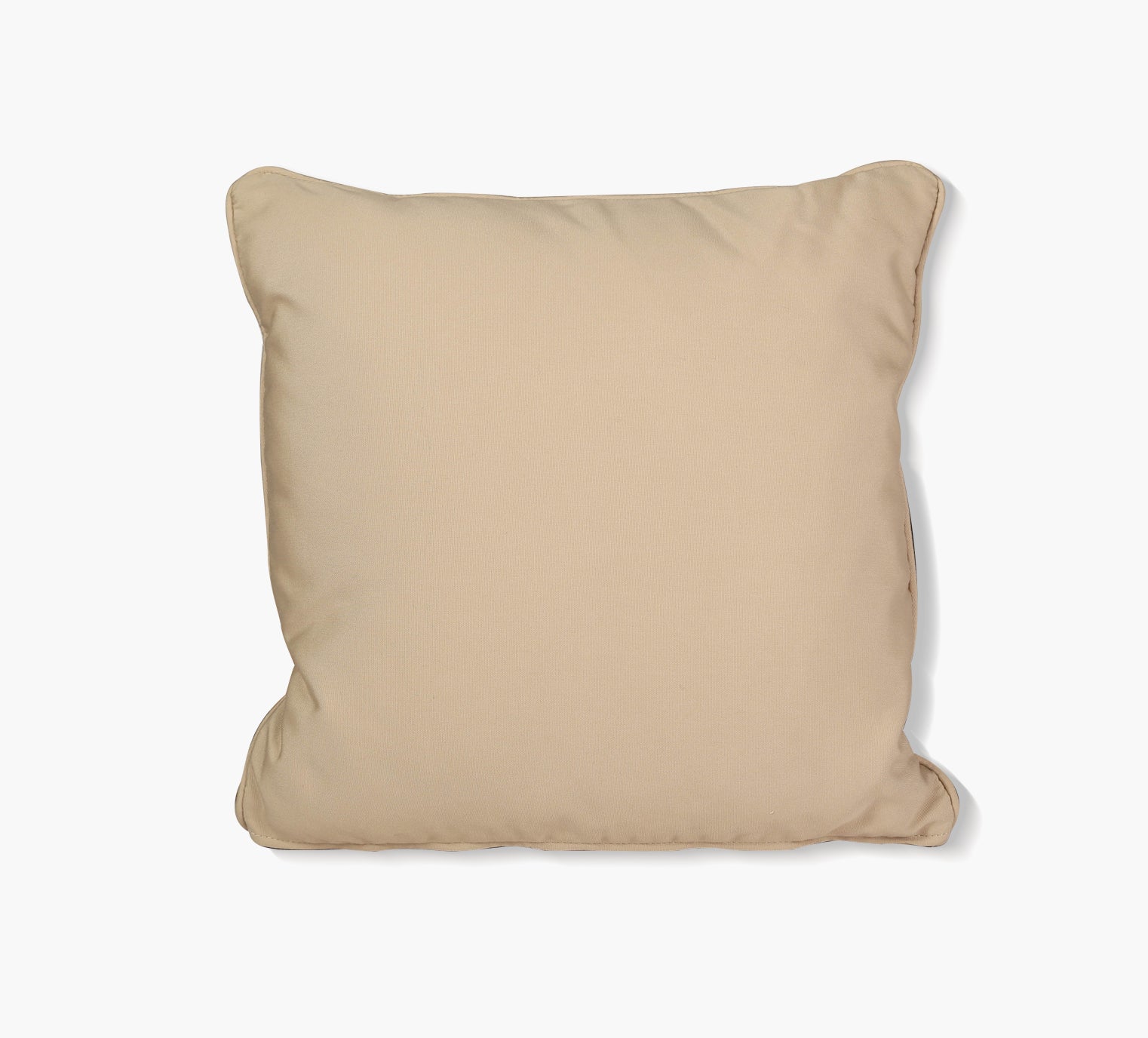 Durable all-weather 18"" x 18"" decorative throw pillow features reversible front and back design in fade resistant Sunbrella 100% solution-dyed acrylic upholstery. Front: Solano Fiesta/Back: Canvas Antique Beige. Includes contrast welt in Canvas Antique Beige and zipper for convenience. Handmade in the U.S.A."