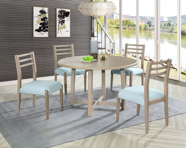 This charming group features a round table made of Rubber wood, MDF, and Pine with matching side chairs for a comfortable dining experience. The combination of wood frames with upholstered seats creates a cozy atmosphere.