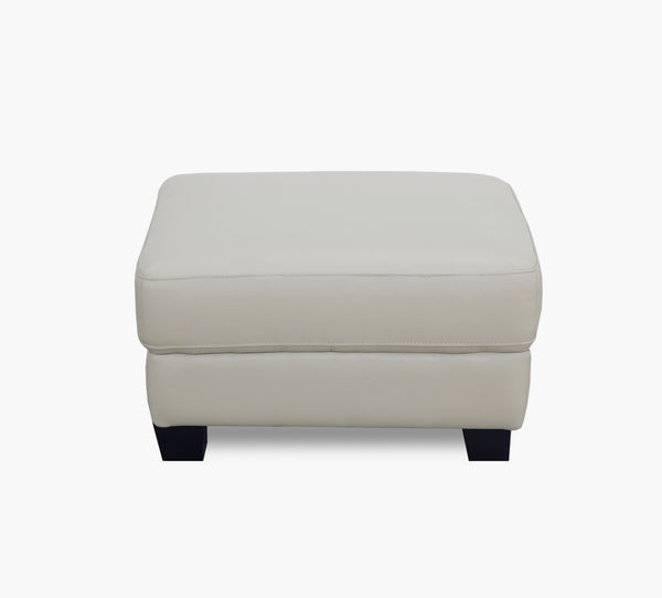 100% Premium top grain leather everywhere you sit matched with split leather on outside panels. Transitional design and wood legs stocked in both ivory and platinum.