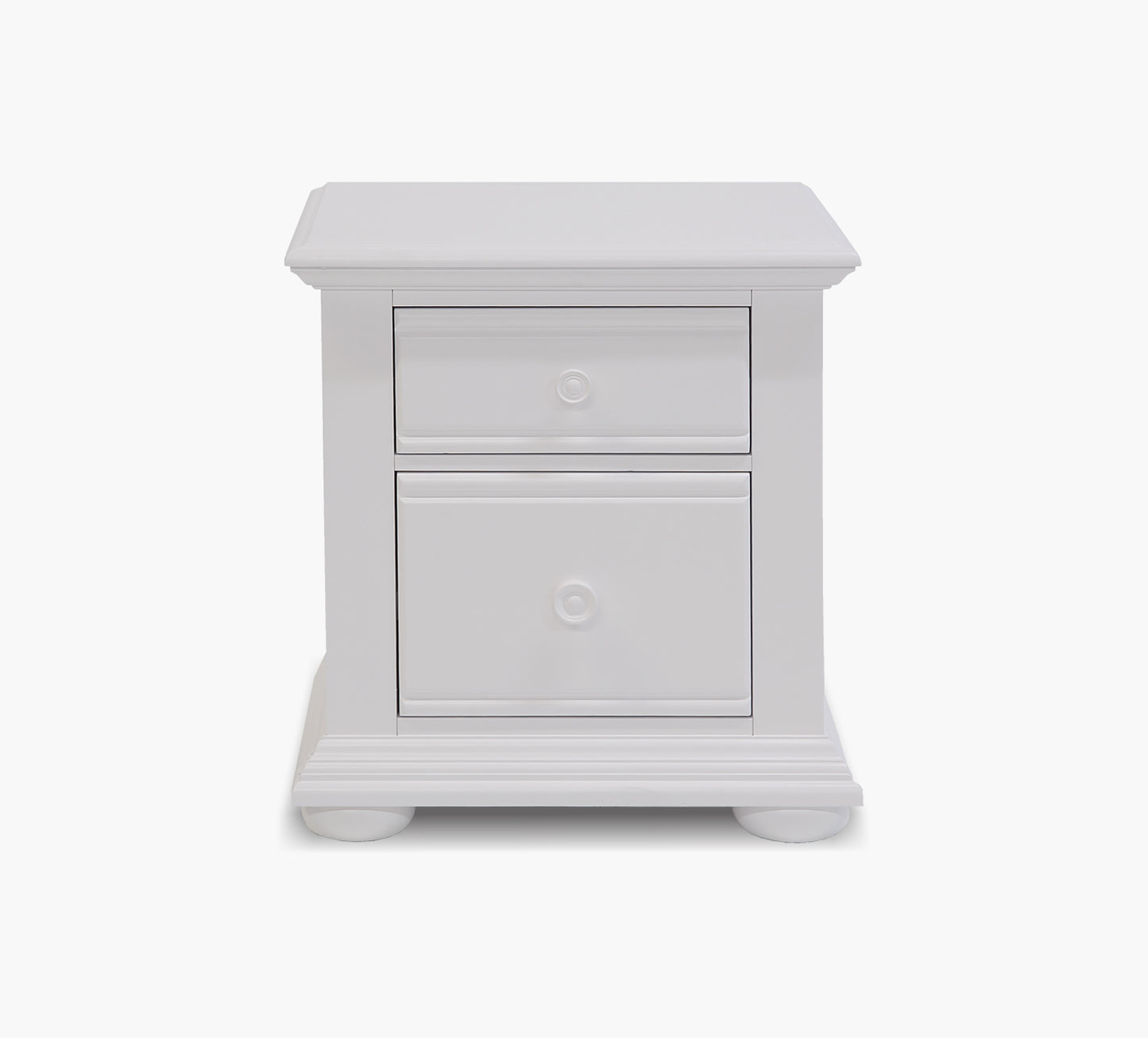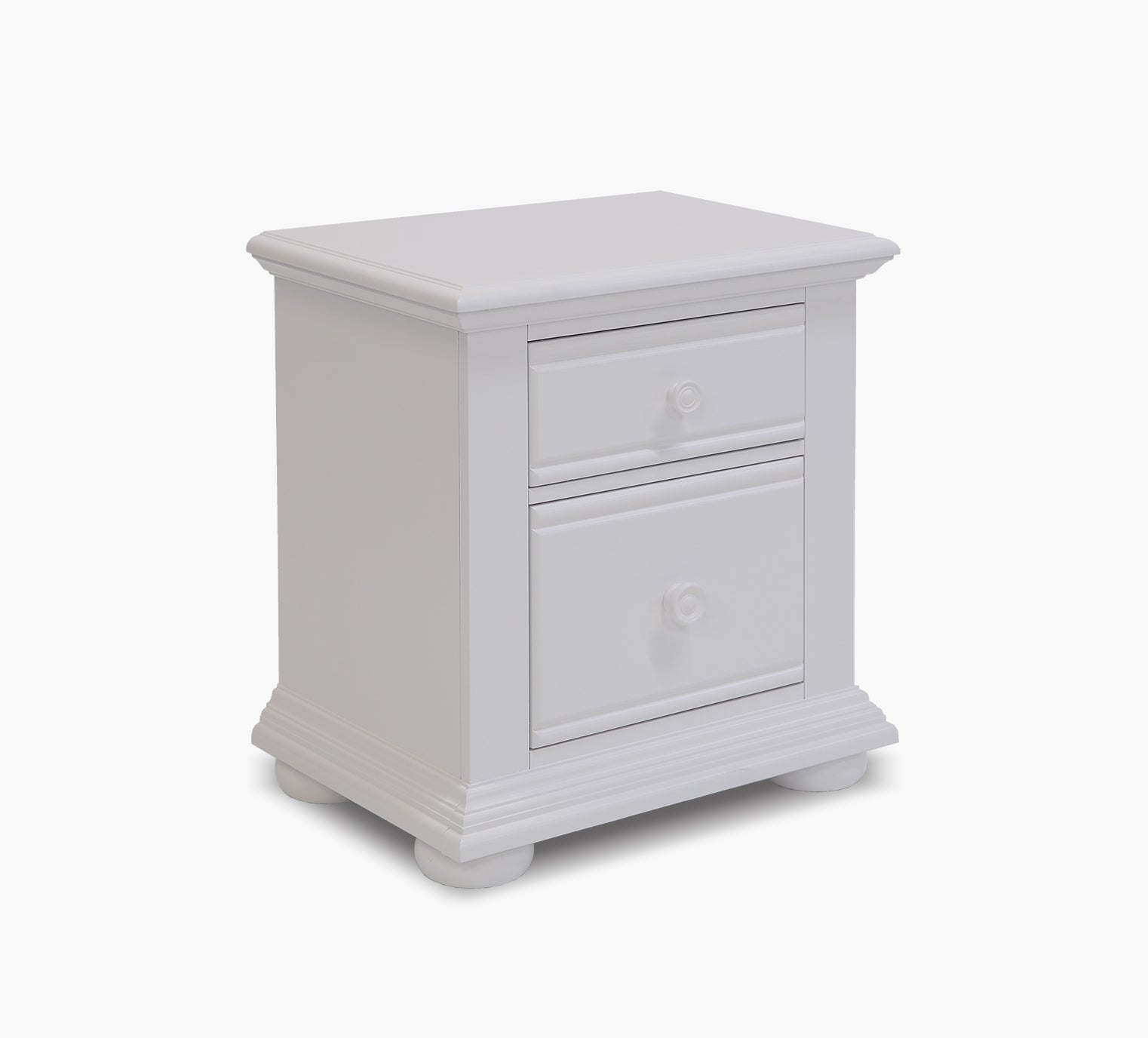 Add a touch of coastal charm to your bedside with the Summer House White 2 Drawer Nightstand. Finished in a soft oyster white, this piece offers two spacious drawers for convenient storage, each featuring full-extension metal glides for smooth operation. The top drawer is felt-lined, perfect for keeping delicate items safe and organized. Crafted from poplar and pine solids, this nightstand combines durability with breezy elegance, making it a beautiful and functional addition to any bedroom.