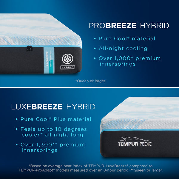 Experience proven, all-night cooling with the all-new TEMPUR-ProBreeze® mattress. Featuring specialized cool-to-the-touch covers that work with our exclusive Pure Cool® Material to help pull heat away from your body so you stay cooler—all night long.