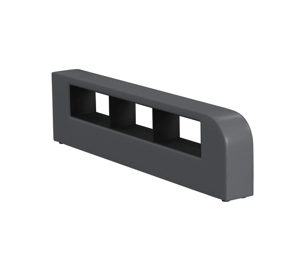 Side bookcase in a sleek PU leather, with wood shelves. Can be used on either side of the bed.