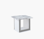 Beautiful faux marble table top replicates natural veining, multiple color, and shading.High gloss white and silver U-shaped base.
