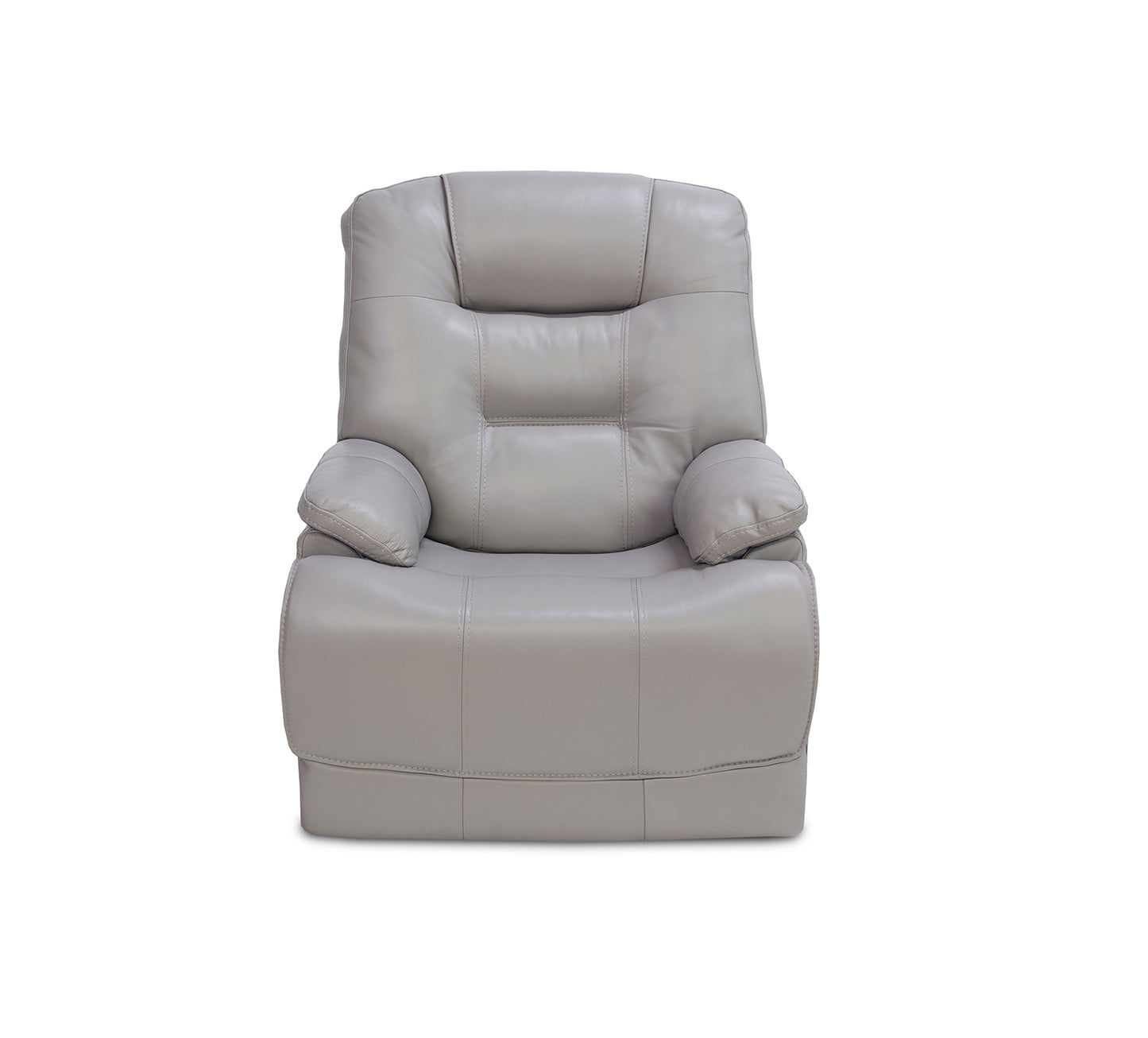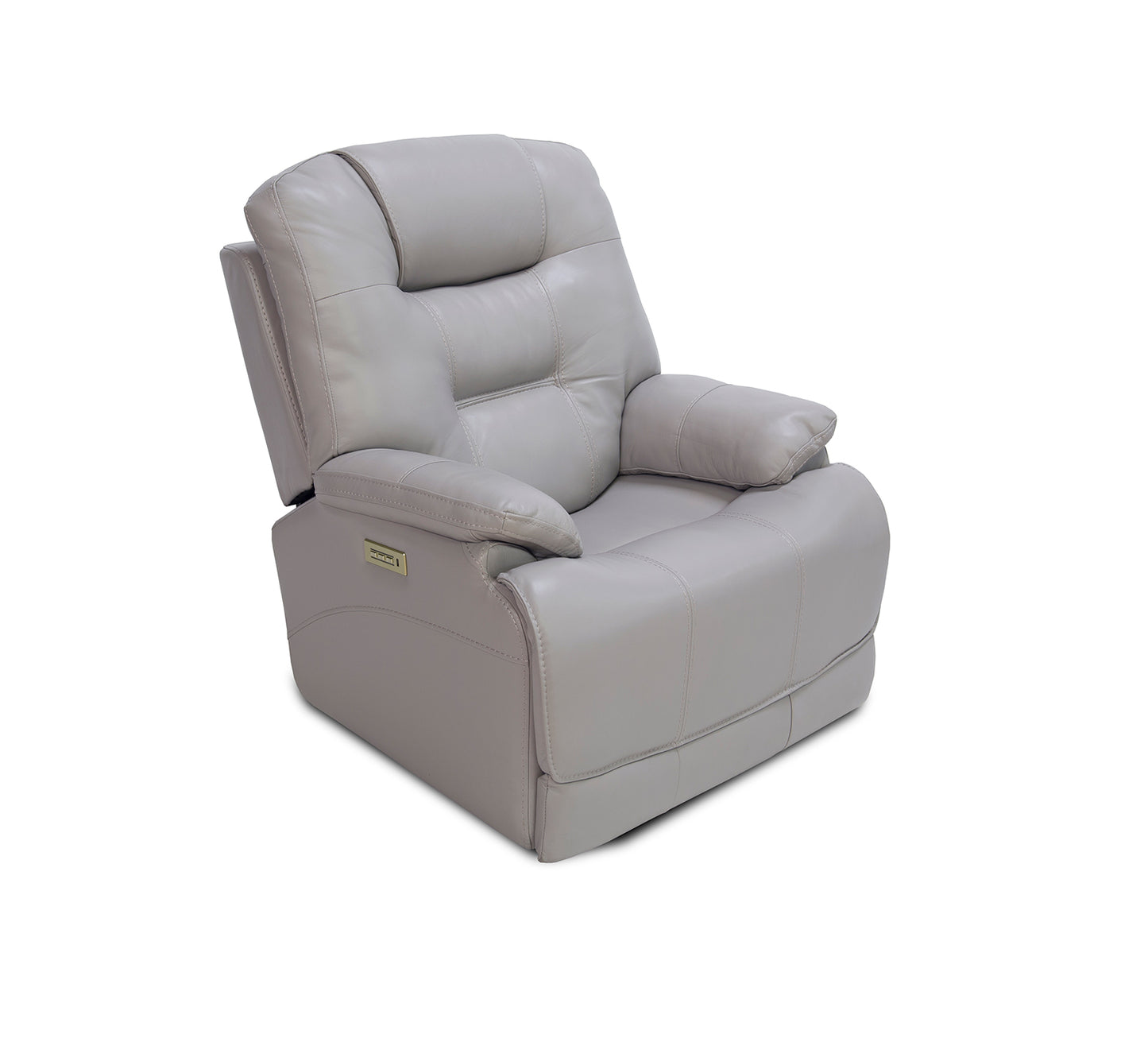 Top grain leather everywhere you sit matched with vinyl. Large scale lay flat power recliner with power headrest and power lumbar. Features home button, USB port, and Blue Tooth capability with MOTOMOTION app control. Extended footrest reclining to 72" in length when fully open. 3 year power motor warranty. 300 lb weight capacity.