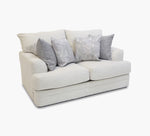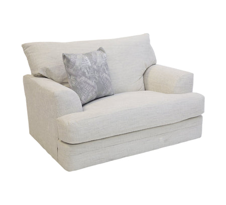 Large scale, deep seated transitional sofa. Features shark fin arms, reversible loose backs & T-seat cushions and steel tech framing. Comfort coil construction with Comfor-Gel topper. Includes 3 pillows.